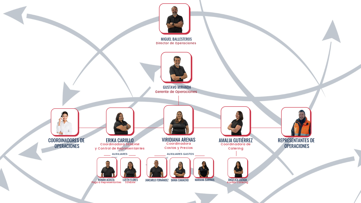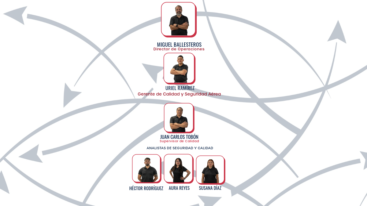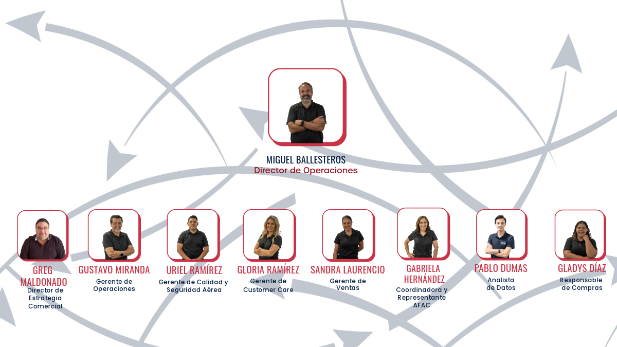 Dirección de Operaciones Gerencia de Operaciones Flight Coordination Calidad y Seguridad Aérea Customer Care Representante AFAC FBOs Conoce más compañeros